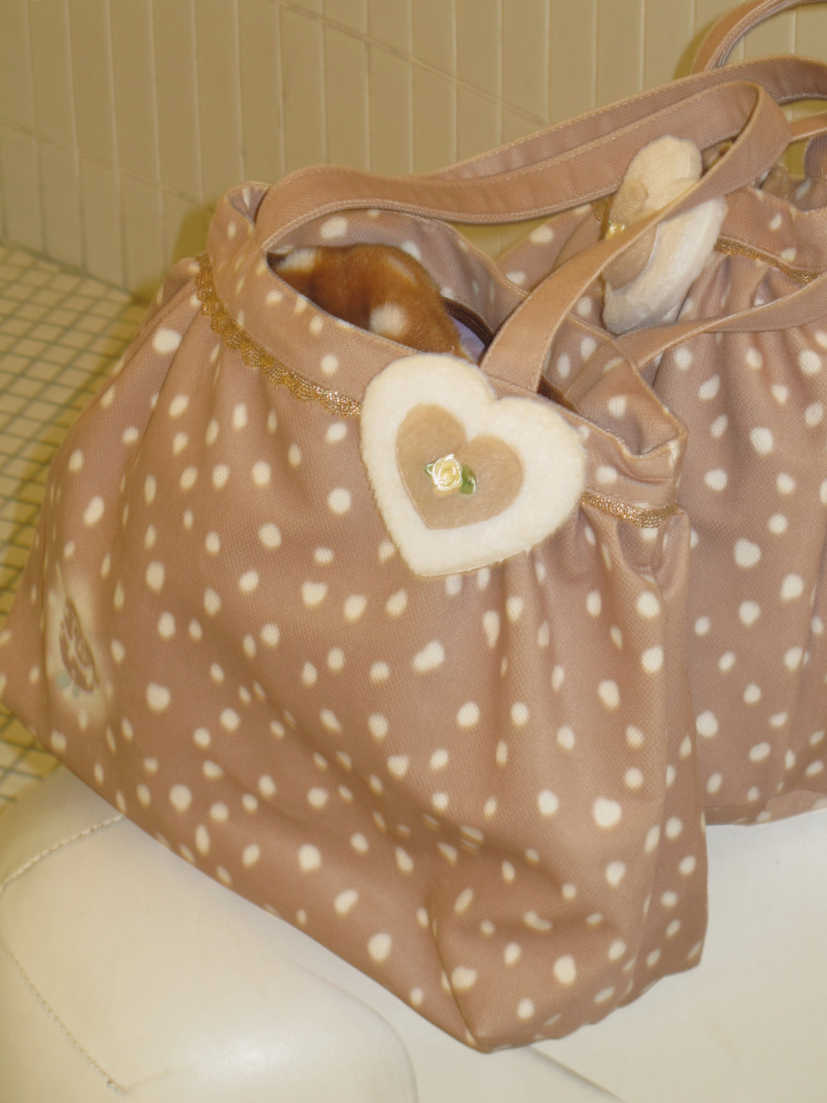 A soft, large-capacity handbag with a gentle deer pattern and calm winter tone.