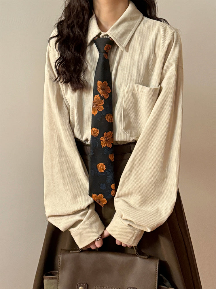 A cozy retro essential that works as both a shirt and a light jacket. With its soft corduroy texture, puffed sleeves, and loose unisex fit, this versatile piece layers effortlessly for autumn days and casual street looks.