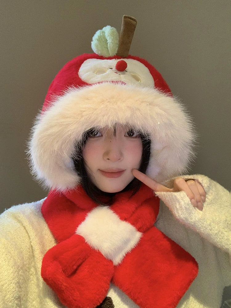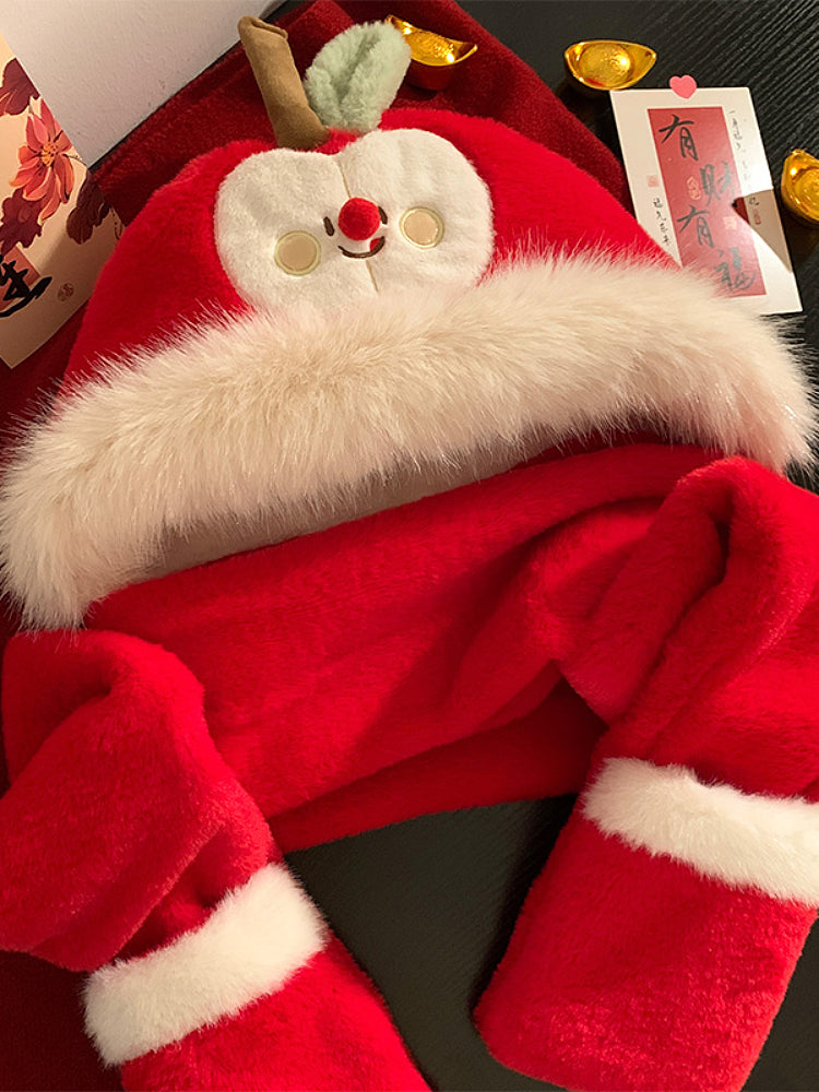 A warm and whimsical red-apple hood that wraps your whole winter in sweetness — plush, cozy, and perfect for New Year cuteness and snow-day warmth.