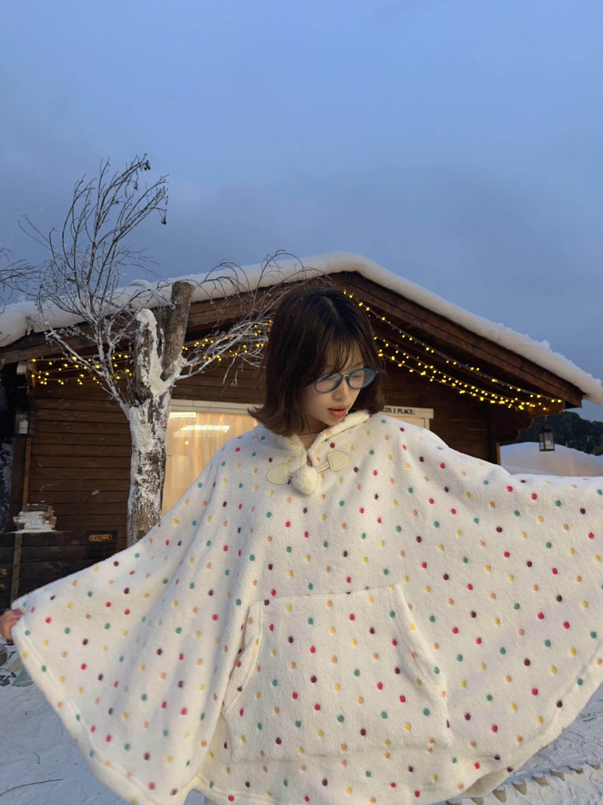 A soft cape, tiny dots, and a very good excuse to stay in ✨