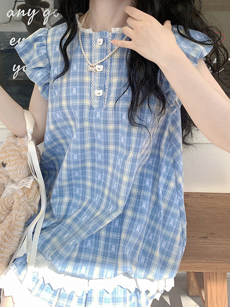 Plaid Puff Sky Short Dress