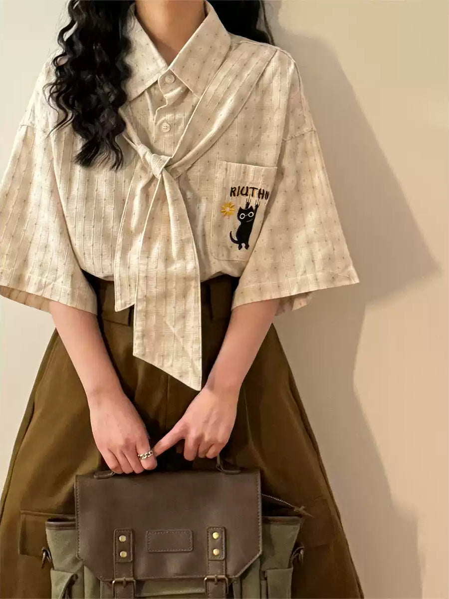 A playful short-sleeve shirt that blends retro college mood with a soft, cute twist.