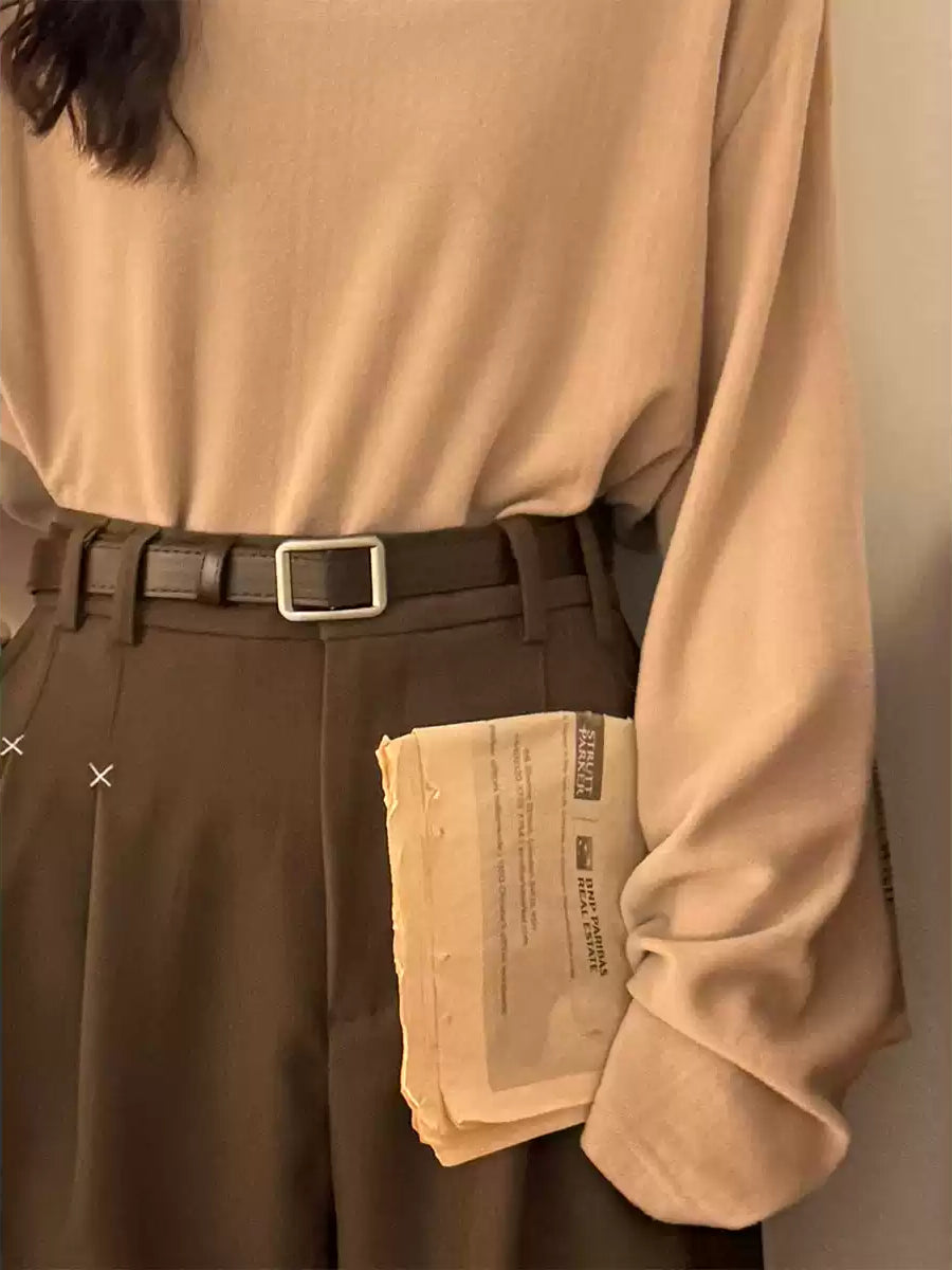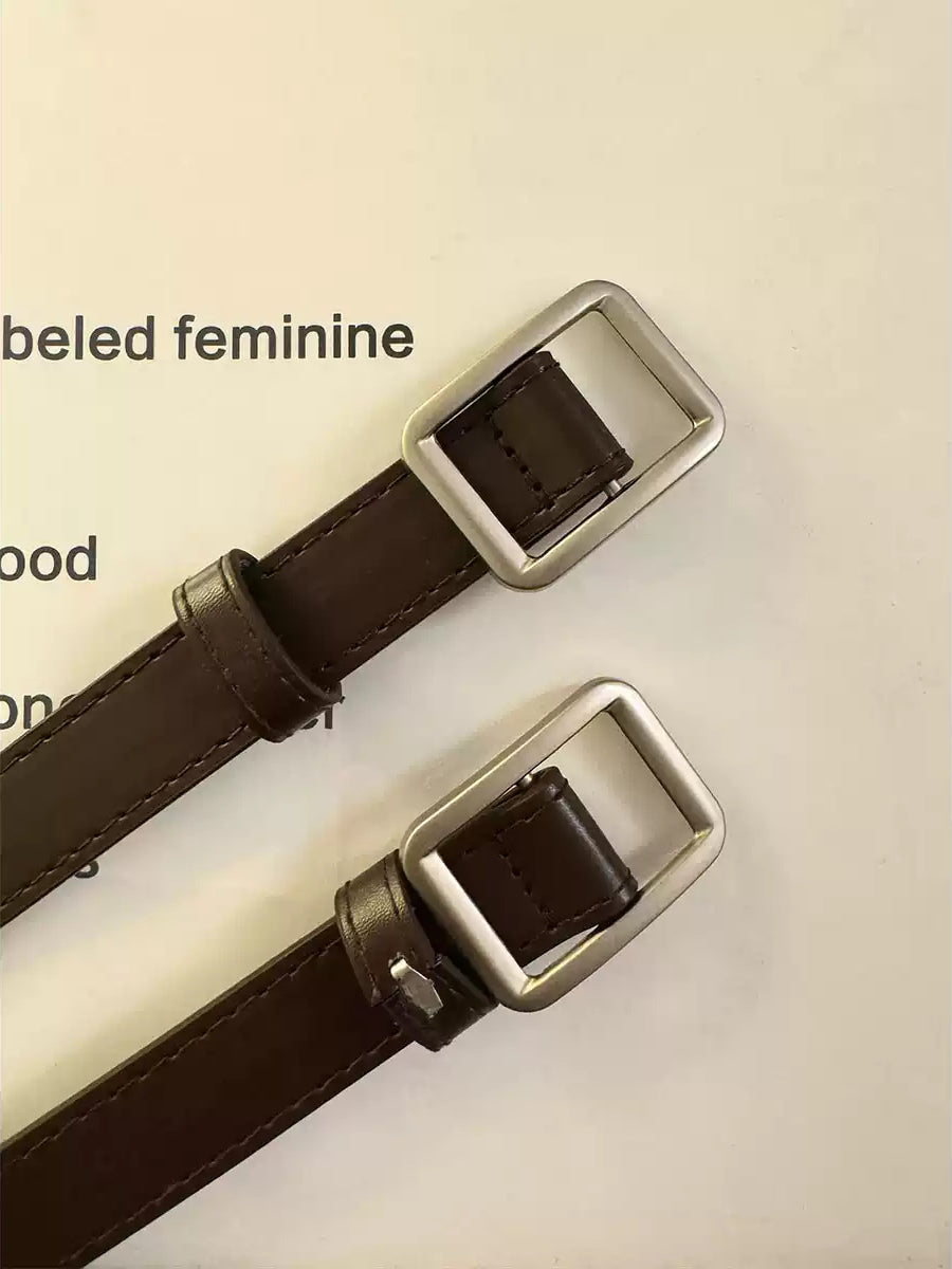 Coffee-toned strap, a square buckle and neat stitching, the kind of detail noticed while adjusting your outfit before heading out ☕