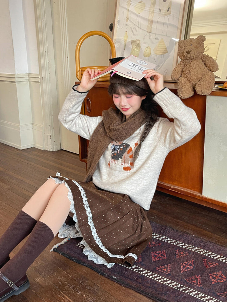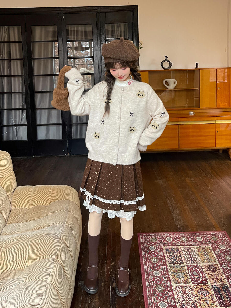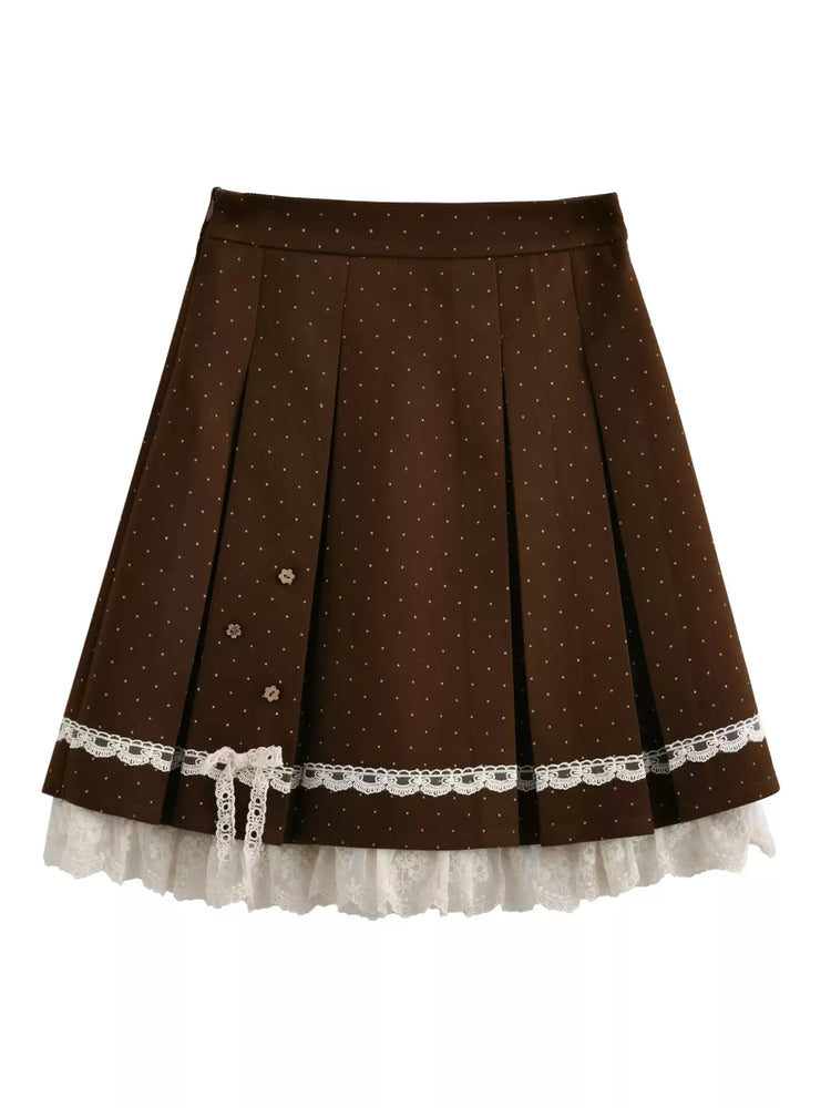 Cocoa Dot Lace Pleat Skirt