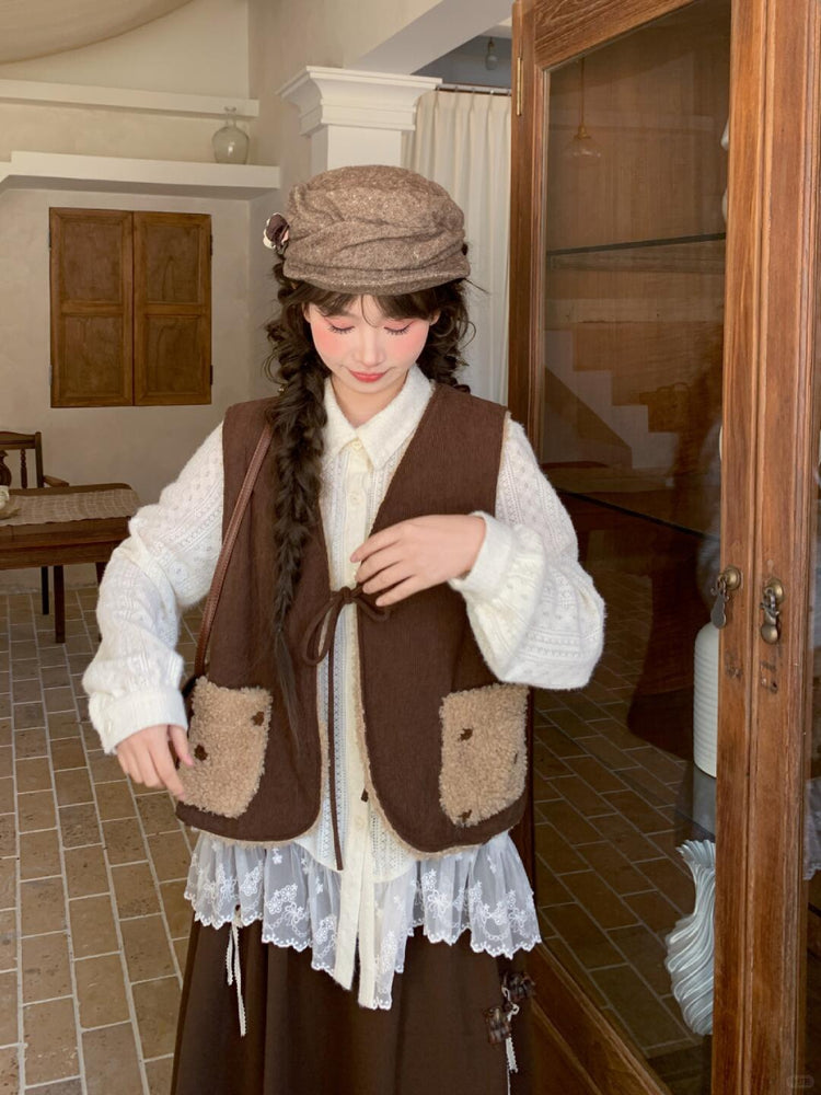 Ivory lace, small buttons, and a sheer hem — the kind of shirt noticed while waiting by a bright window ☁️