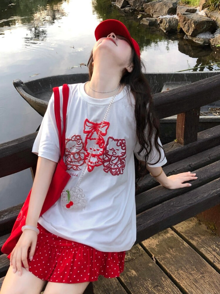 Twirl into summer with the Cherry Dot Fluff Skirt — a playful layered cake skirt dotted with cheerful red polka dots. Inspired by sweet Korean street fashion, this ruffled beauty brings a nostalgic yet trendy charm to any look. Lightweight and flouncy, it’s the perfect statement piece for sunny days and soft girl aesthetics.