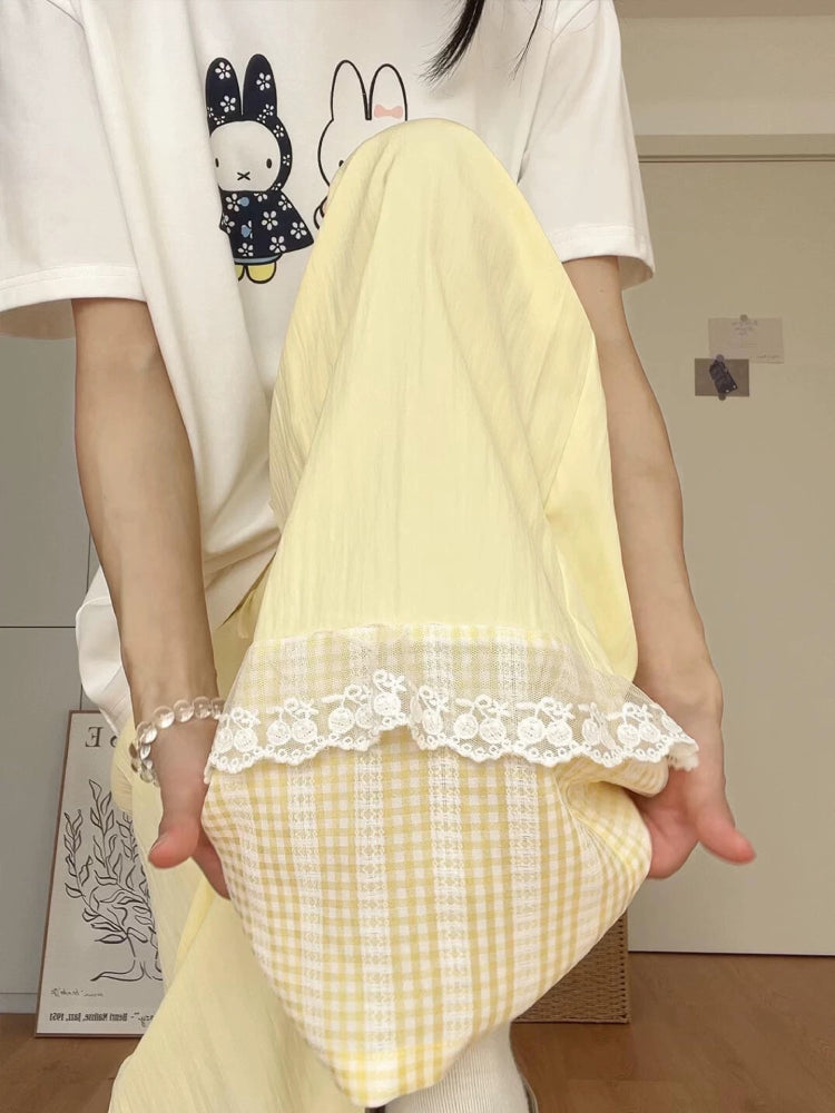 Milk Bloom Gingham Wide Leg Pants-ntbhshop