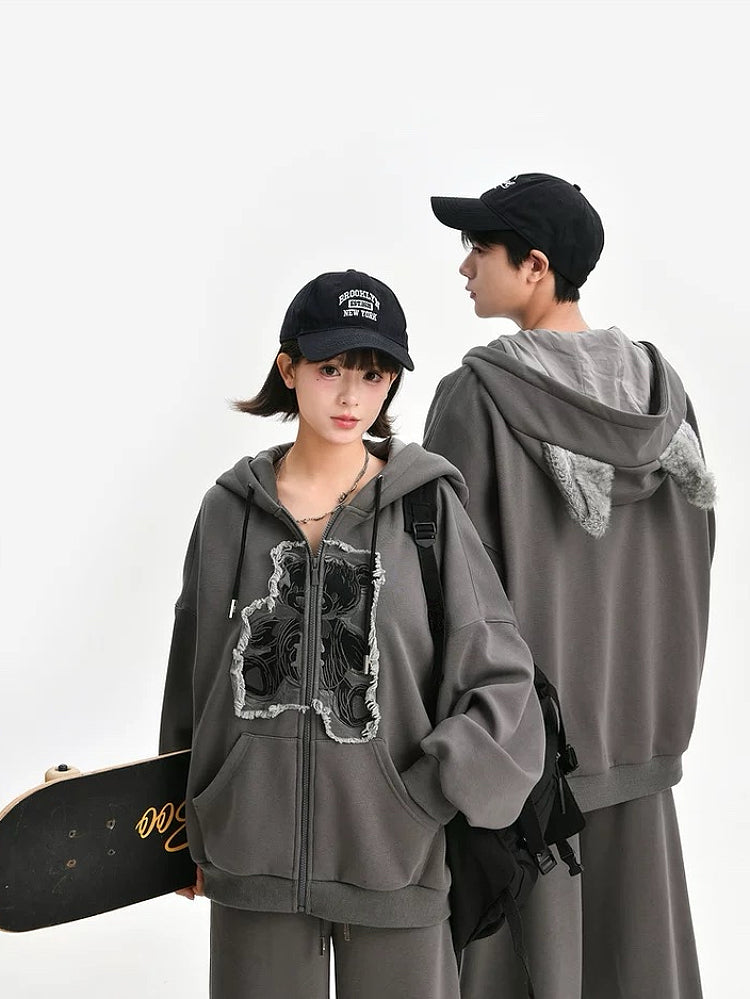 Gray Wolf Hooded Jacket & Sweatpants-Outerwear-ntbhshop