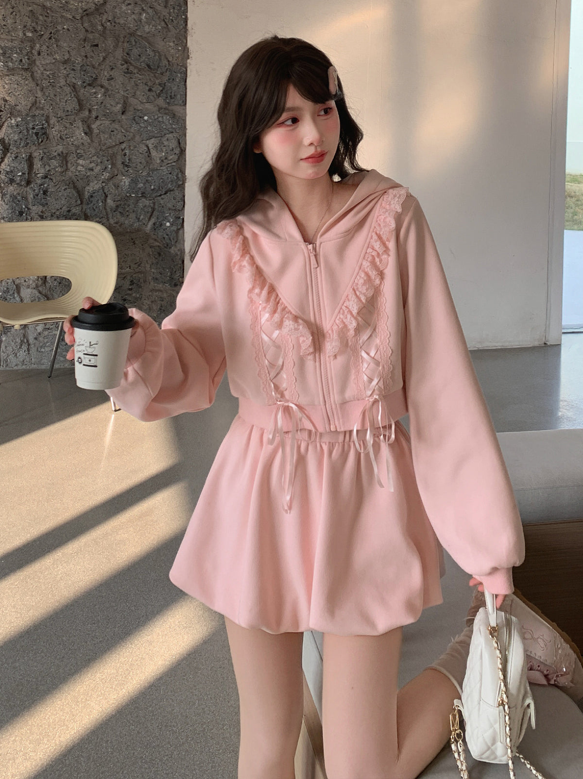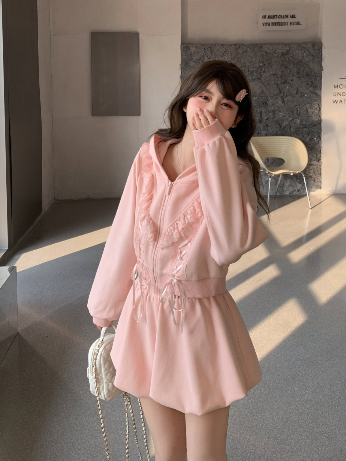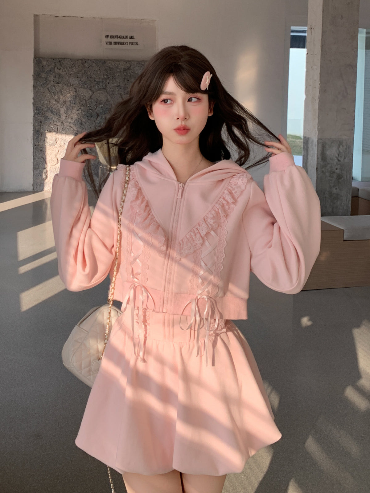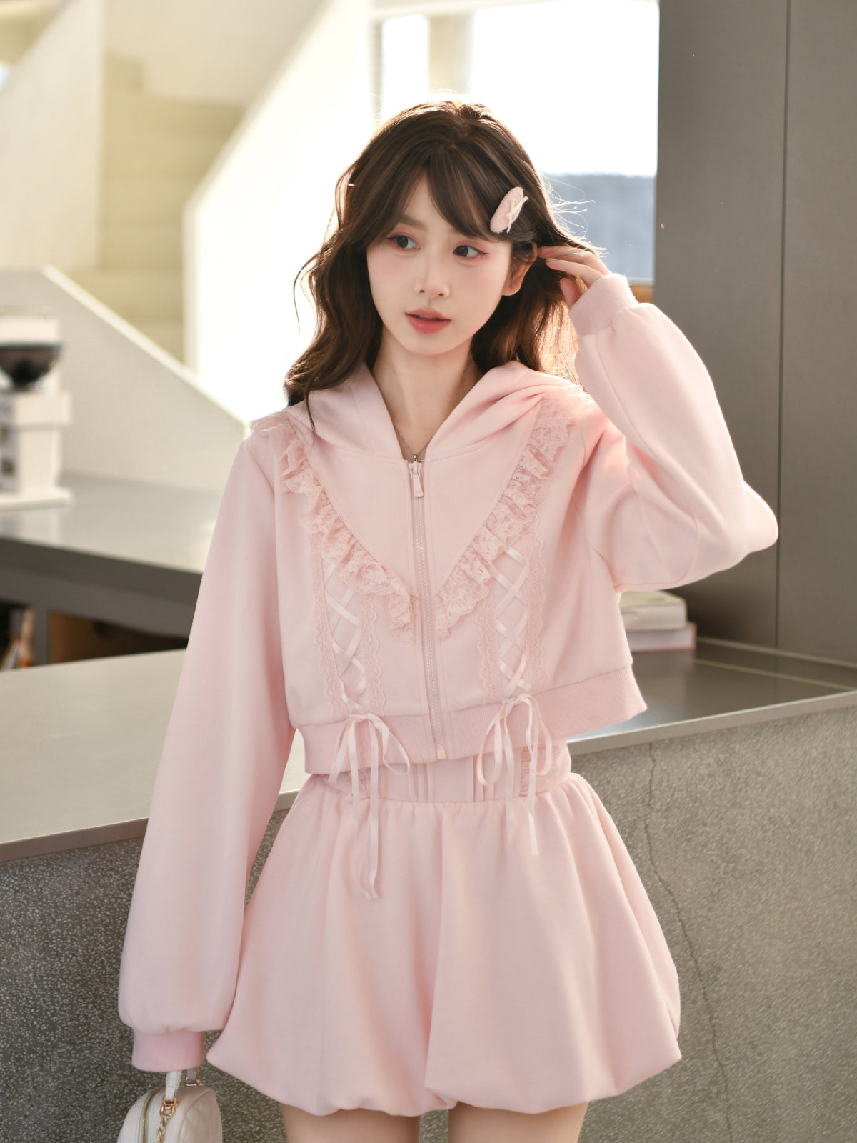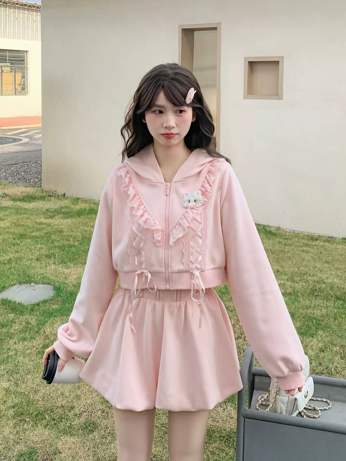 Blush Cloud Kitten Sweat Jacket & Skirt