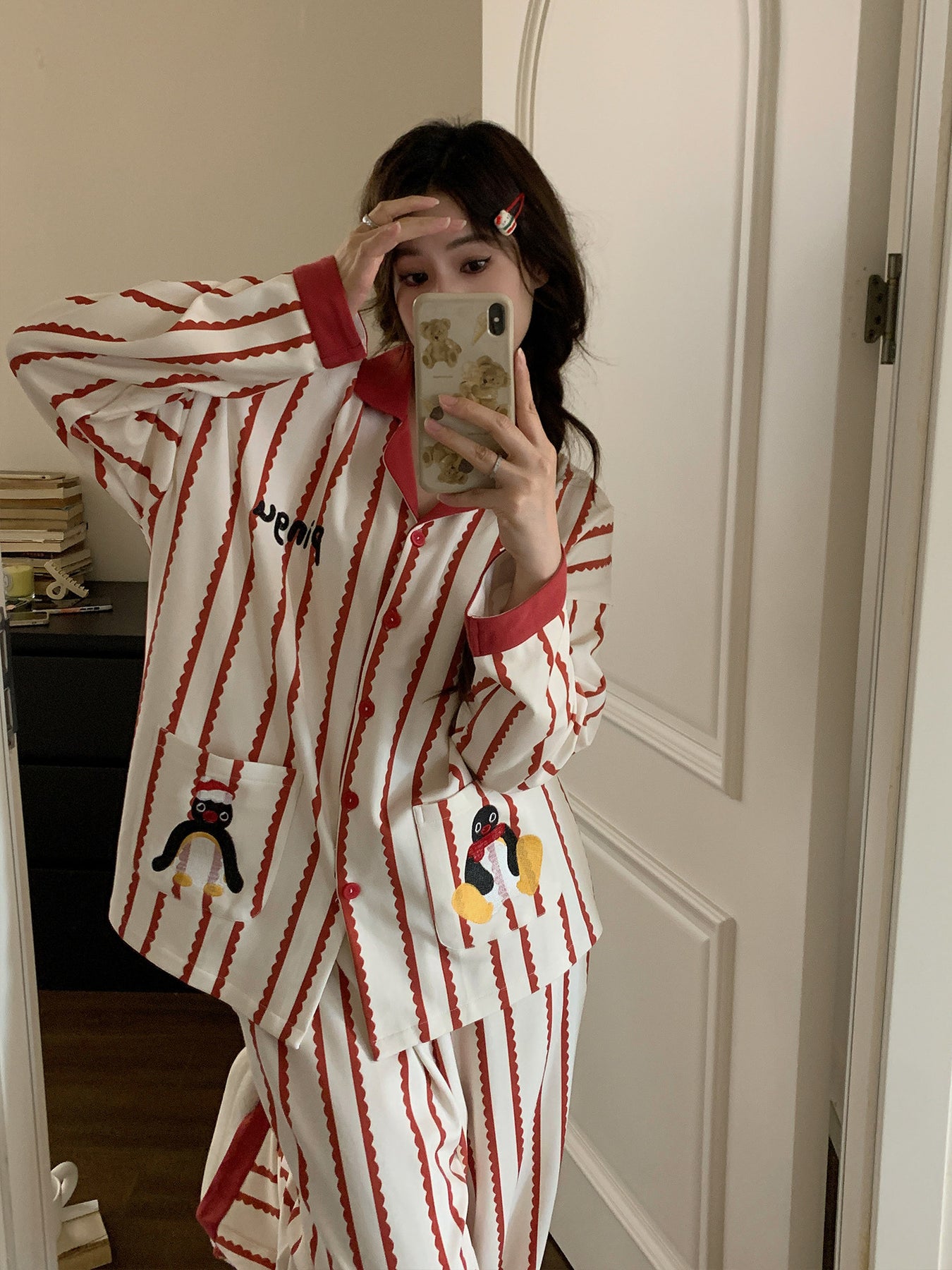 Soft Morning Penguin Stripe Pajama Set-Sets-ntbhshop