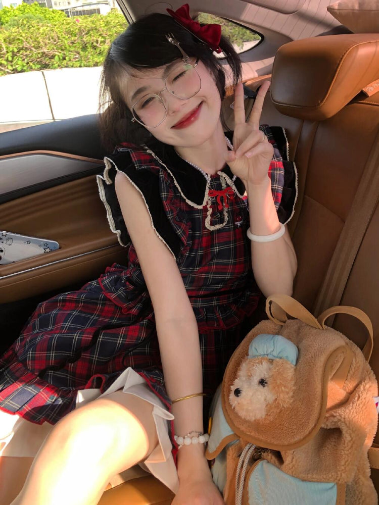 Crimson Heart Open Back Plaid Dress-ntbhshop