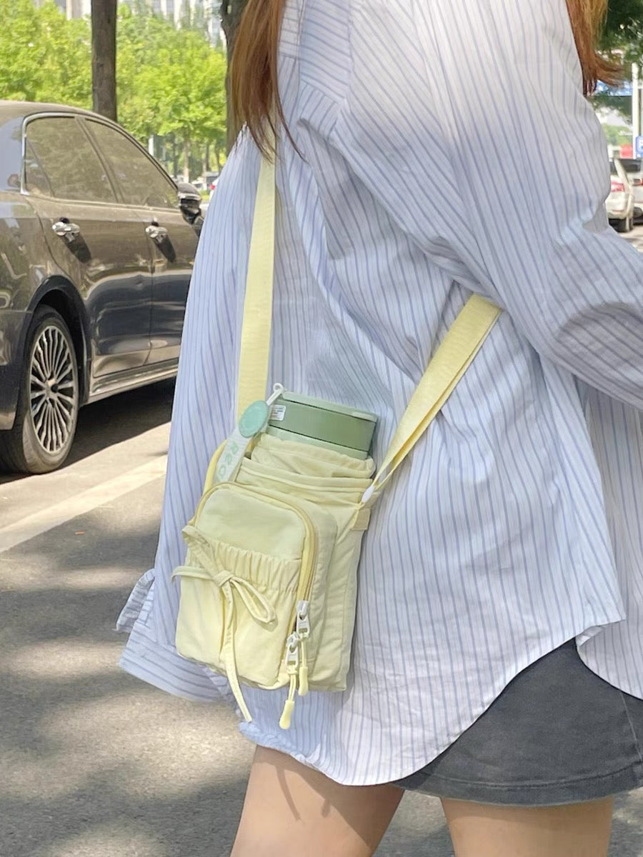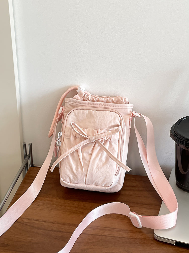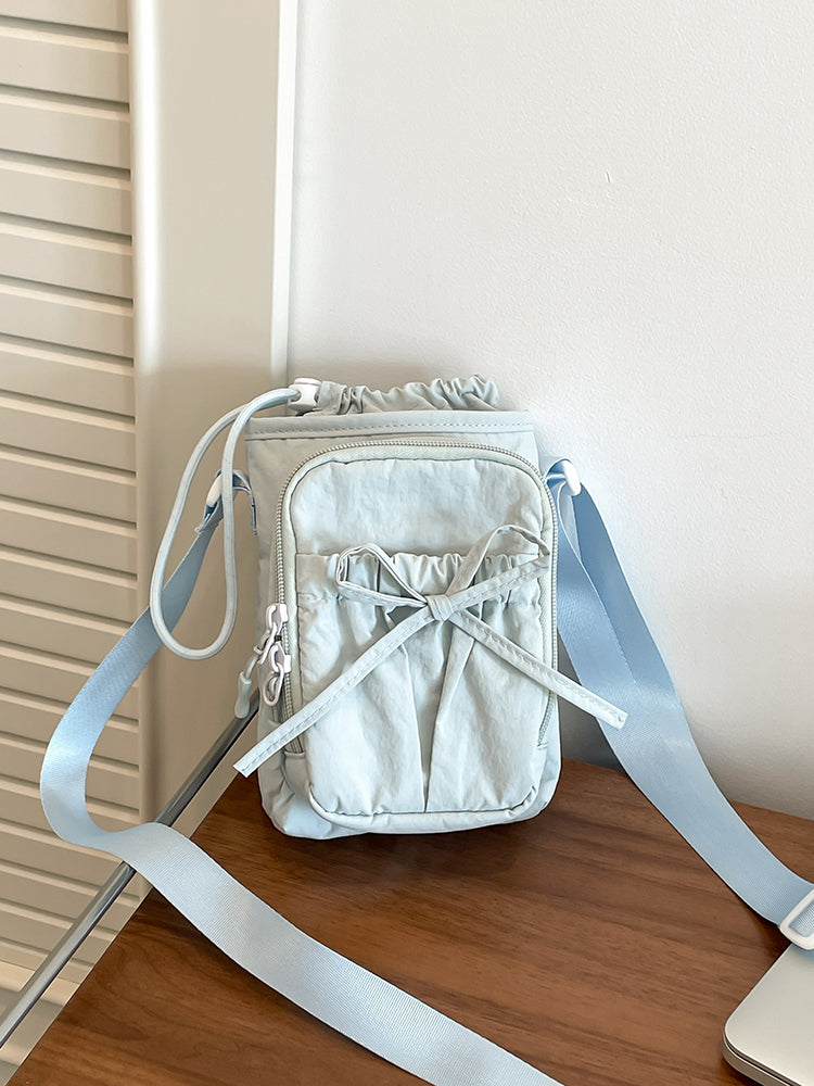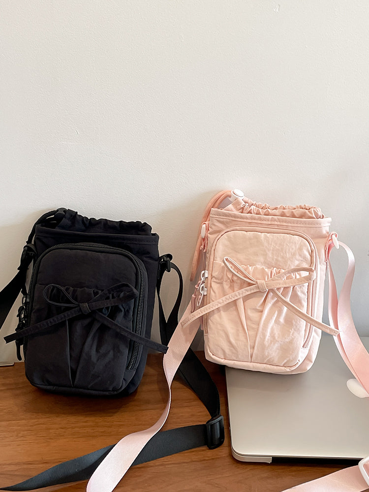 Stay sweet and practical with the Pastel Bow Trio Bag — a playful 3-in-1 design that works as a cell phone pouch, insulated water bottle holder, and compact shoulder bag. With candy-colored tones, a cute bow detail, and water-resistant fabric, it’s your go-to accessory for hands-free days full of whimsy and motion.