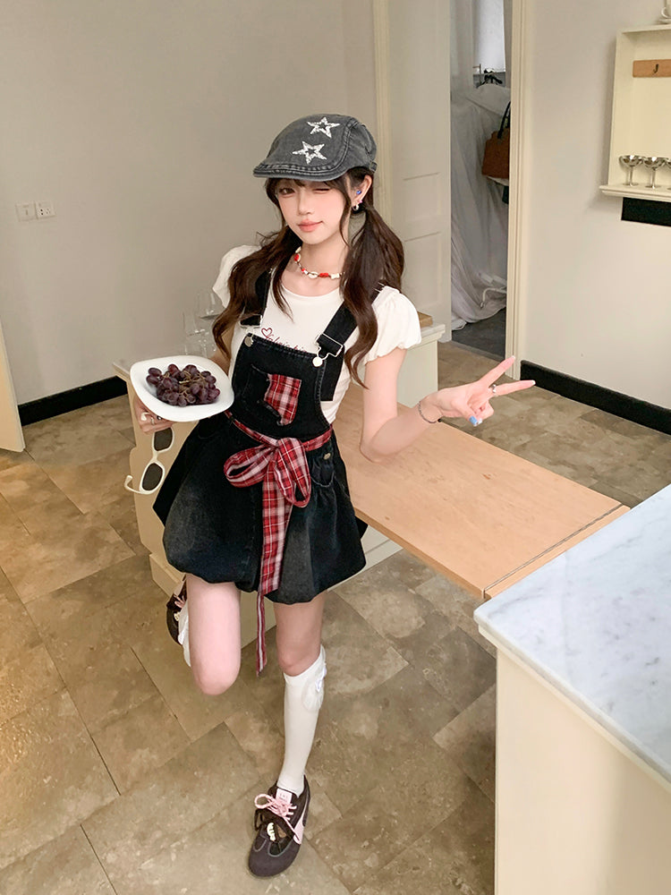 Vanilla Bow Bubble Overall Shorts