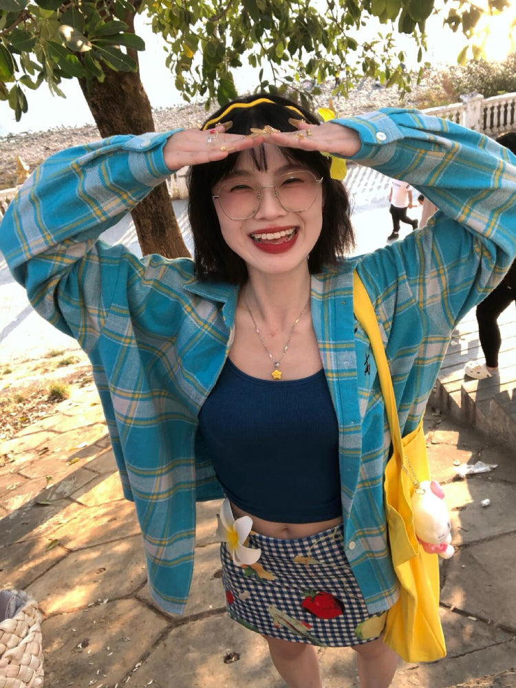 Fruit Pop Whimsy Patch Plaid Shirts