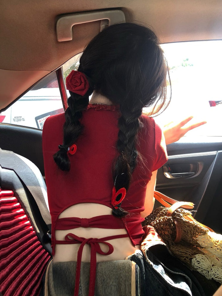 • Design: Open-back heart cutout, colorful multi-straps, and contrast trim details