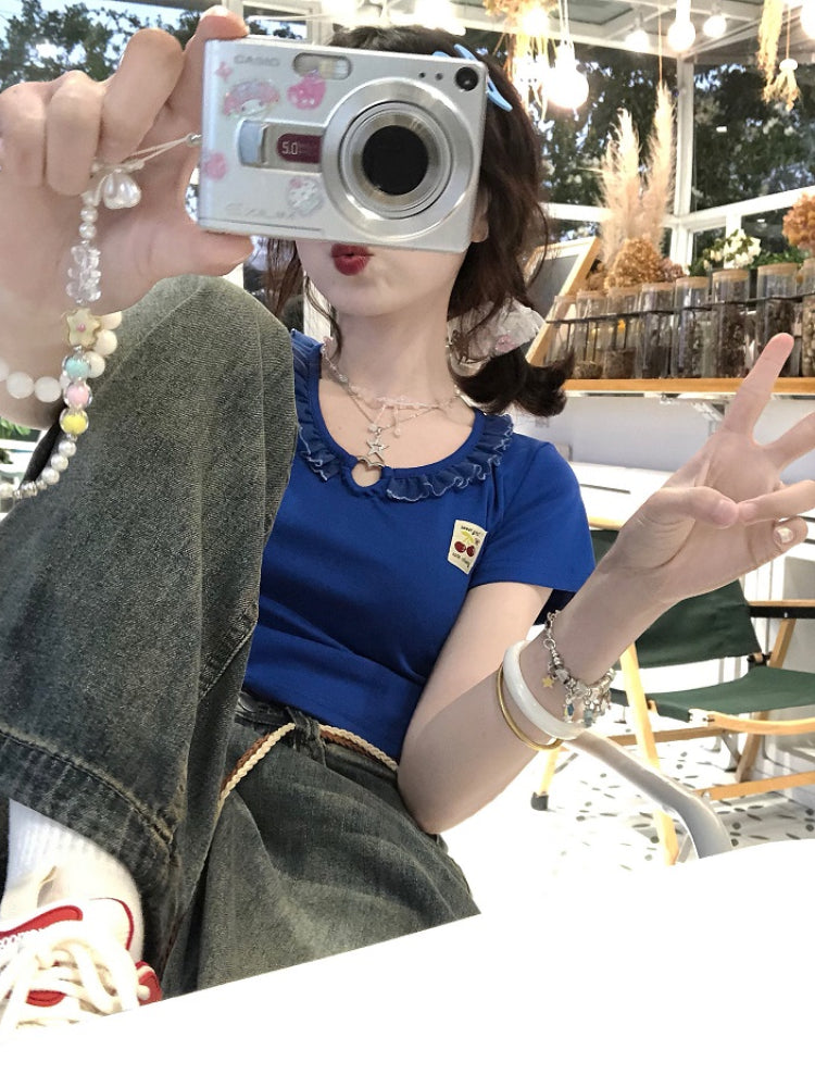 Serve looks like today’s the main course with the Heart Hollow top — a vibrant explosion of dopamine color and playful design. Featuring a Klein blue base, sweet pastel contrast straps, and a love-heart open back, this short-sleeved statement piece is made to turn heads and spark joy. Perfect for summer fun, kidcore styling, or anyone who dresses like dessert!