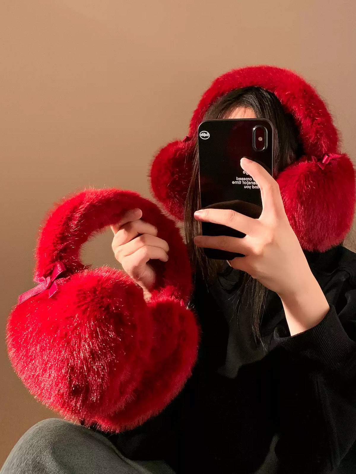 Plush earmuffs designed to keep ears covered during cold-weather outings.