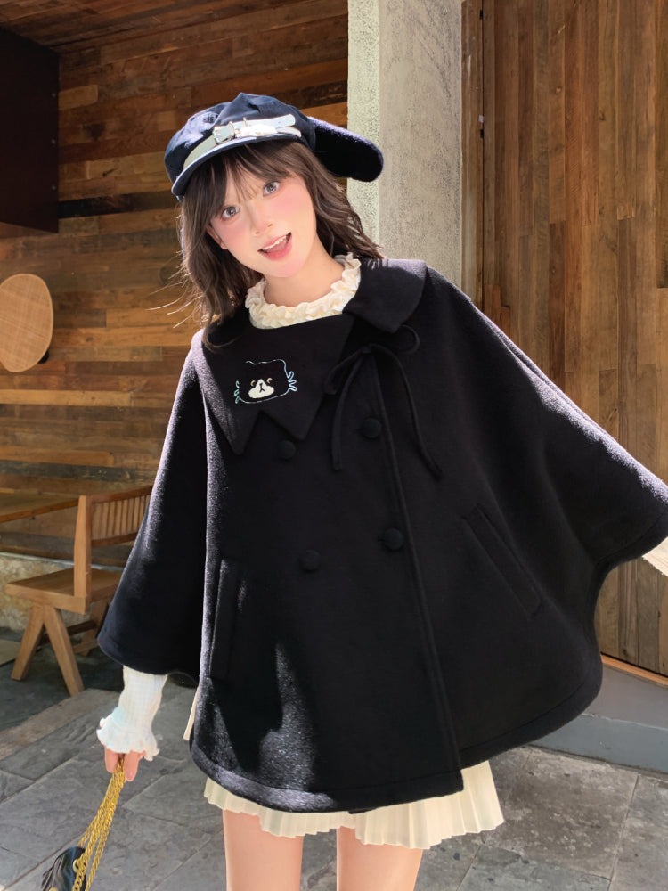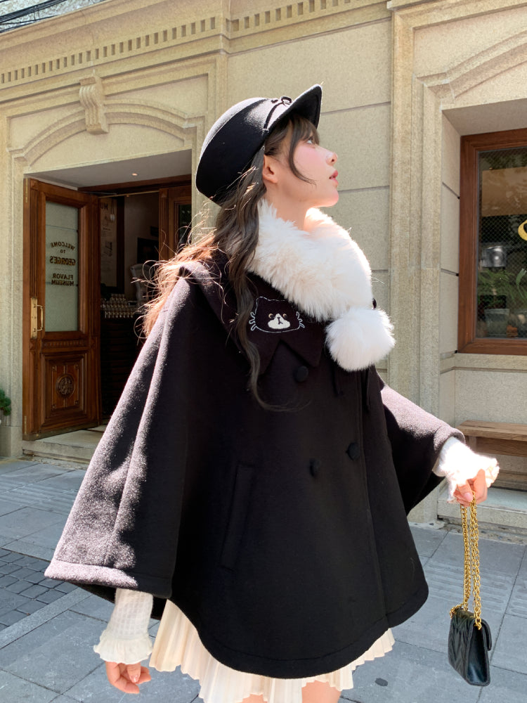 Black Kitten Woolen Cape-ntbhshop