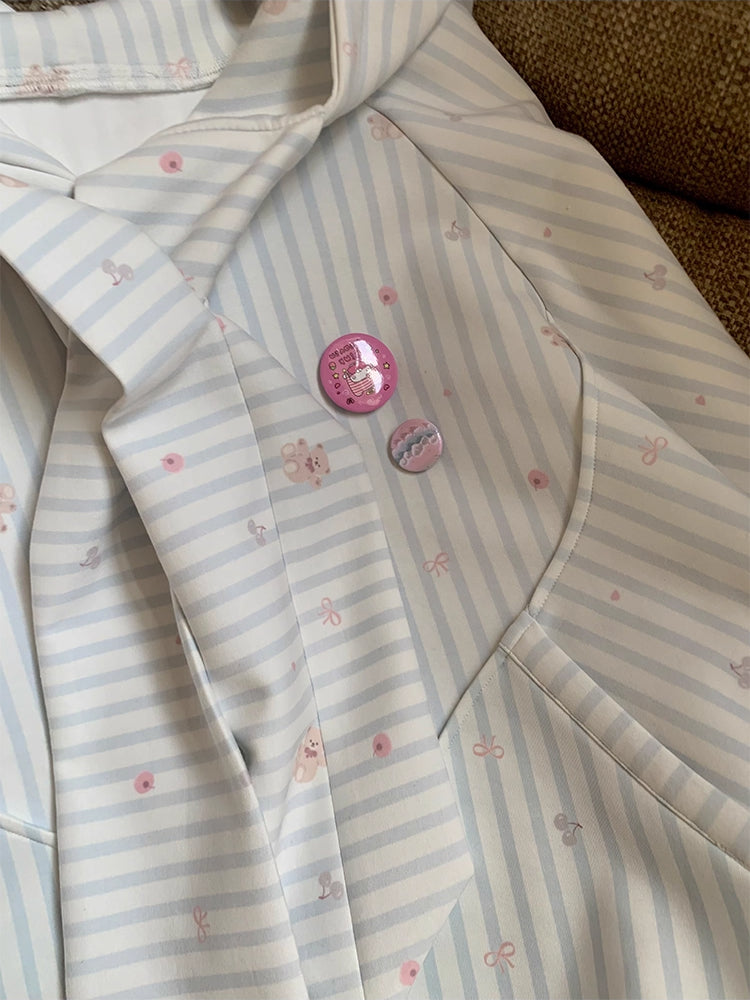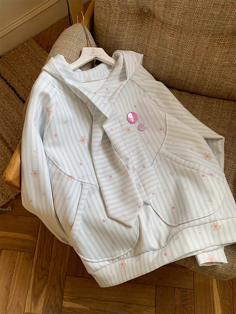Bring playful charm into your wardrobe with the Bunny Ear Stripe Raglan Hoodie. Featuring bunny ears, colorful cartoon buttons, and bear print details, this hoodie is designed for cozy layering with a touch of childlike fun. 🍯🐻