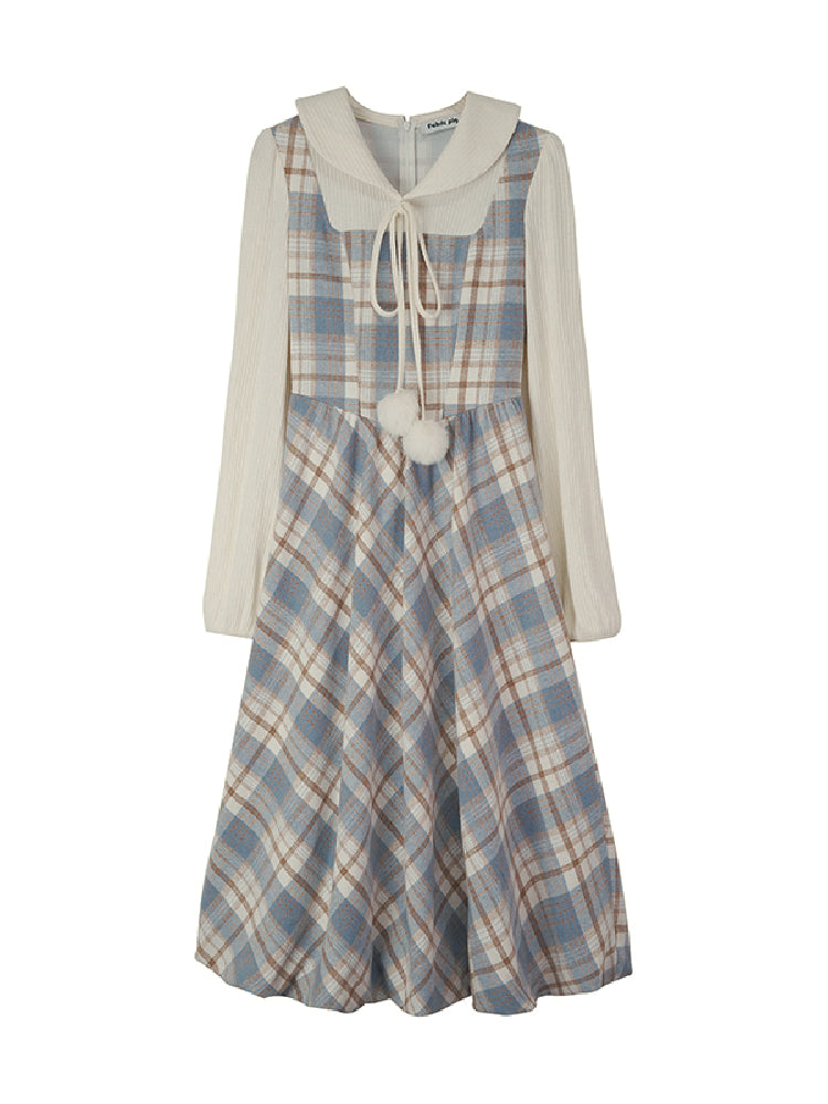 A teddy-sweet twist on preppy plaid — this faux two-piece dress and cropped jacket combo brings cozy campus vibes to autumn days. Comes with an optional bear toy for peak cuteness.