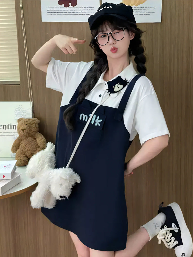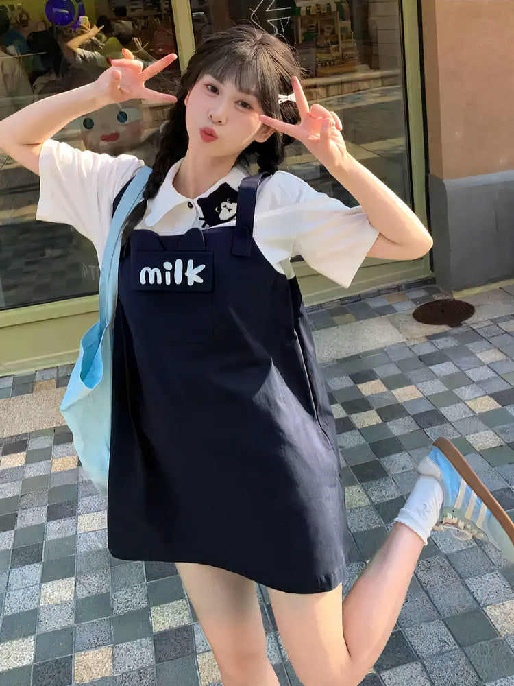 Milk Cat Overall Dress