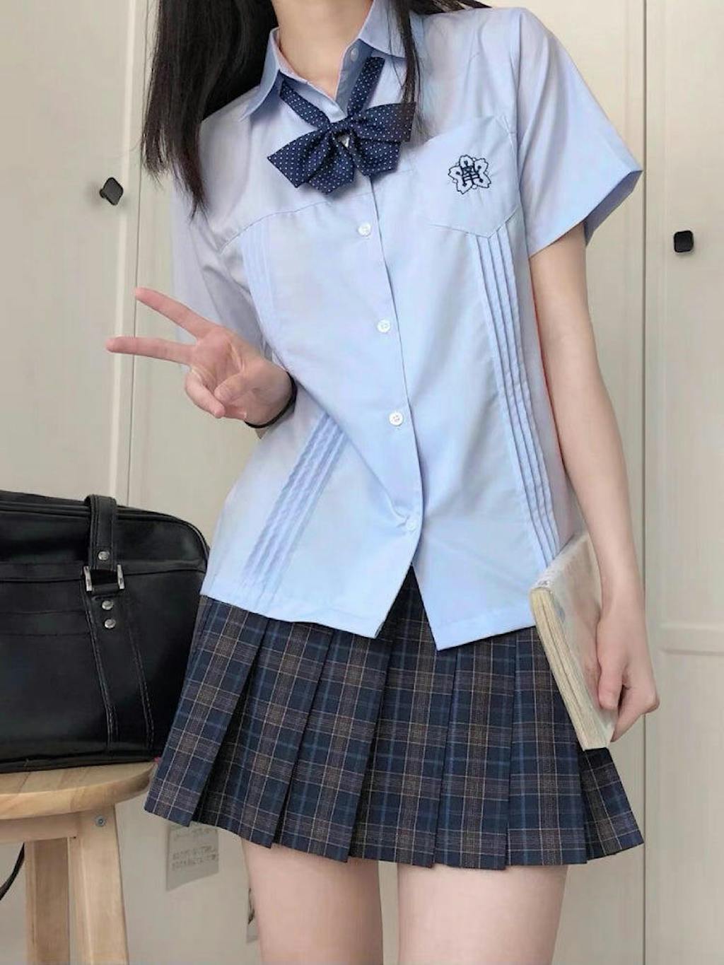 Clean white fabric, a crisp collar edge — the shirt folded on a chair before morning homeroom 🌸