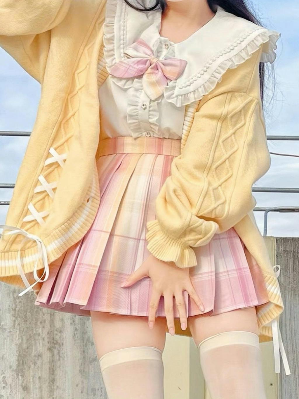 Works with blouses, ribbons, and uniform-style skirts.