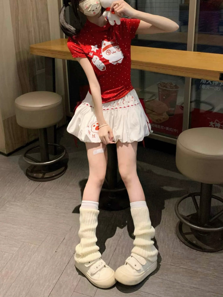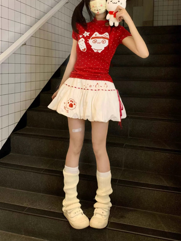Pumpkin Pop Contrast Halter Tee & Plaid Bubble Skirt