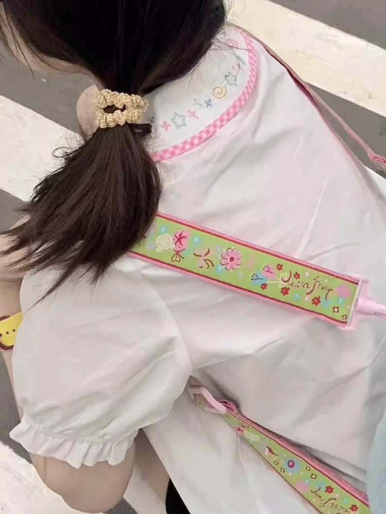 This darling plaid blouse features a sweet doll collar and delicate star embroidery, as if plucked from a bedtime story. With soft puff sleeves and a playful bubble bus motif, it’s a gentle nod to nostalgic childhood and dreamy summer afternoons.