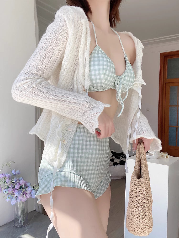 Bring timeless charm to the water with the Noemi Gingham Two-Piece Swimsuit. Inspired by French retro aesthetics, this bikini balances fresh sophistication with playful summer vibes — perfect for hot springs, seaside escapes, or vacation lounging.