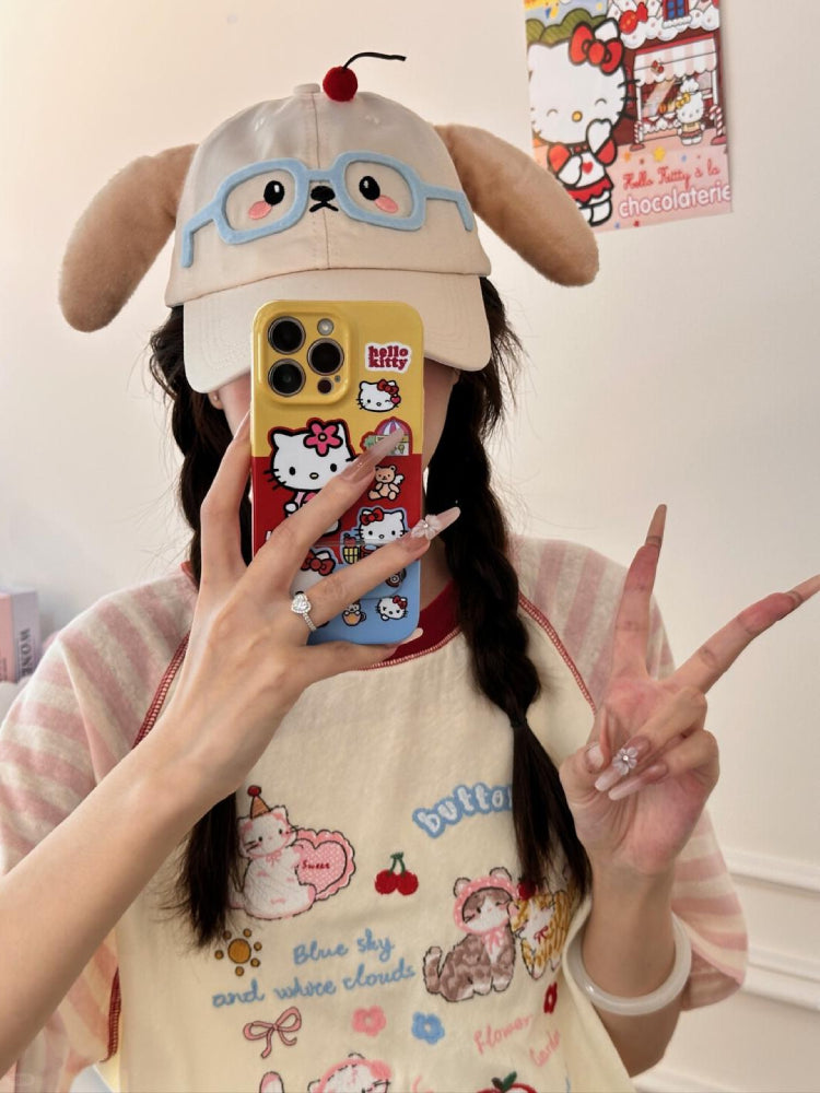Playfully sweet and effortlessly cute, the Cherry Kitten Soft Girl Striped Tee brings soft girl vibes to life with pastel stripes and an embroidered sleepy cat nestled among cherries. The round neck and oversized fit make it a cozy go-to for lazy summer days, café dates, or simply curling up with your favorite plushie. A must-have for pastel lovers, cat girls, and anyone living their kawaii fantasy.