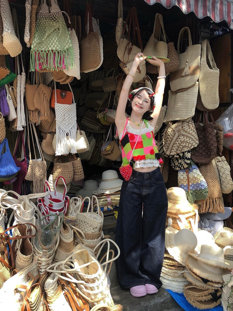 Candy Patch Checkered Flower Knit Vests-ntbhshop