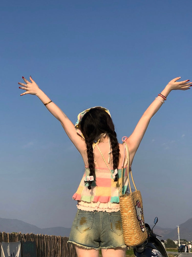 Get ready to jump into color with the Candy Patch Knit Sweater Vest — a cheerful blend of candy-colored patchwork, playful florals, and retro charm. With its checkered design and comfy knit feel, this piece brings dopamine dressing to a whole new level of cute. Wear it layered or solo for an instant mood boost!
