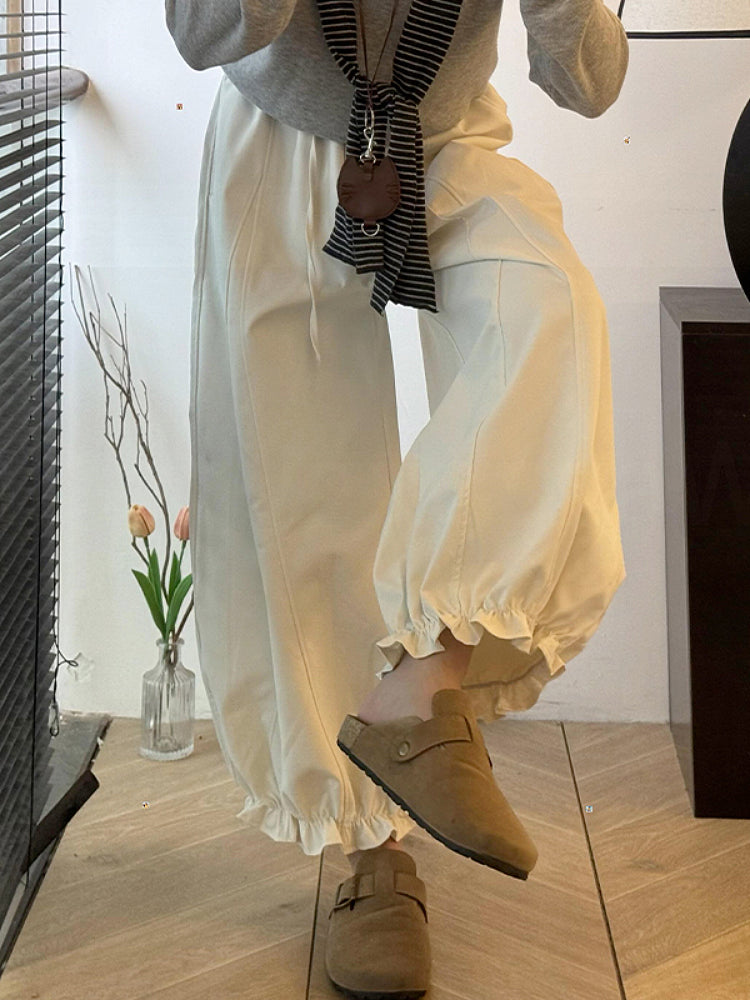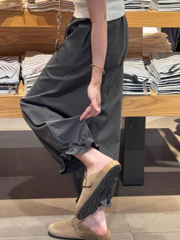 Playful yet practical, these Japanese fungus-edge bubble pants bring a touch of whimsy to everyday wear. With a denim-like texture and versatile wide-leg cut, they balance vintage softness with modern comfort. Available in cropped, midi, and long lengths for every mood.