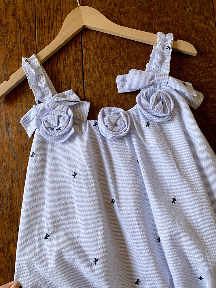 Step into a fairytale with the Ice Blossom Lace Bubble Dress — a niche sweet slip design in crushed ice blue, adorned with delicate bows and 3D flower collar accents. Finished with a semi-sheer lace bubble hem, it’s the perfect age-reducing, summer dream piece. 🌸💙