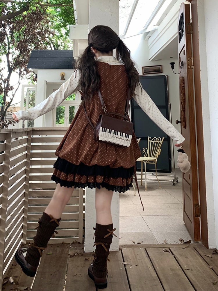 Neko Chan Polka Bubble Dress blends retro Japanese polka dots with delicate two-dimensional embroidery. Featuring a double-layer cake hem and fluttery fairy sleeves, this dreamy dress comes in classic black or warm brown — perfect for sweet student looks and whimsical outings. 🌸✨